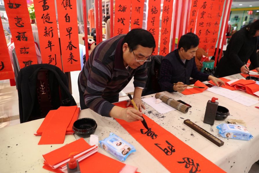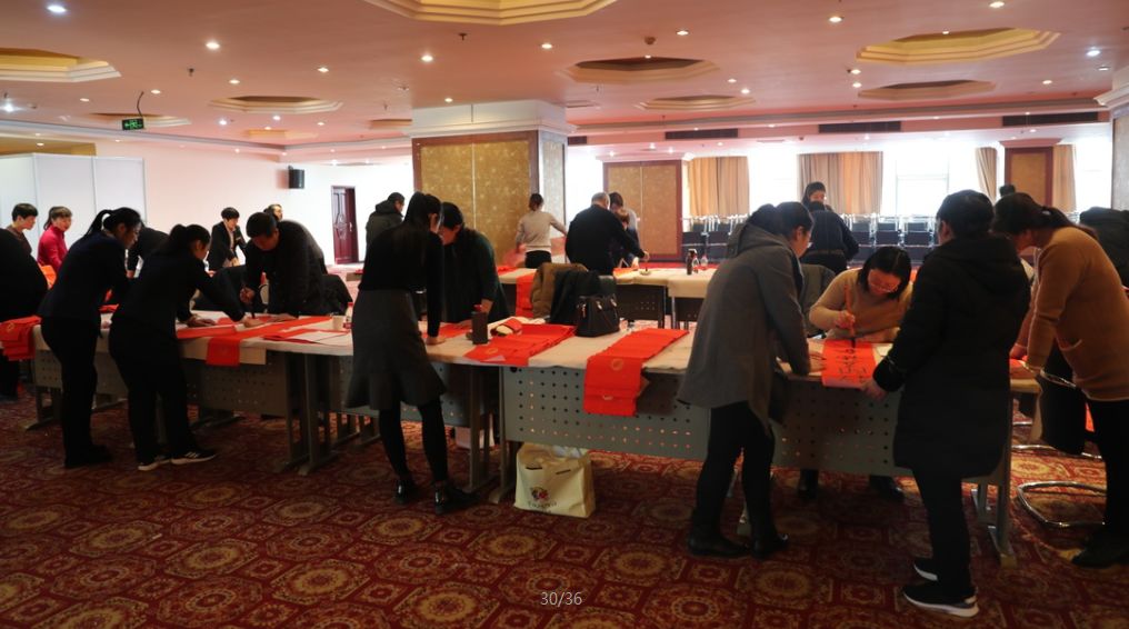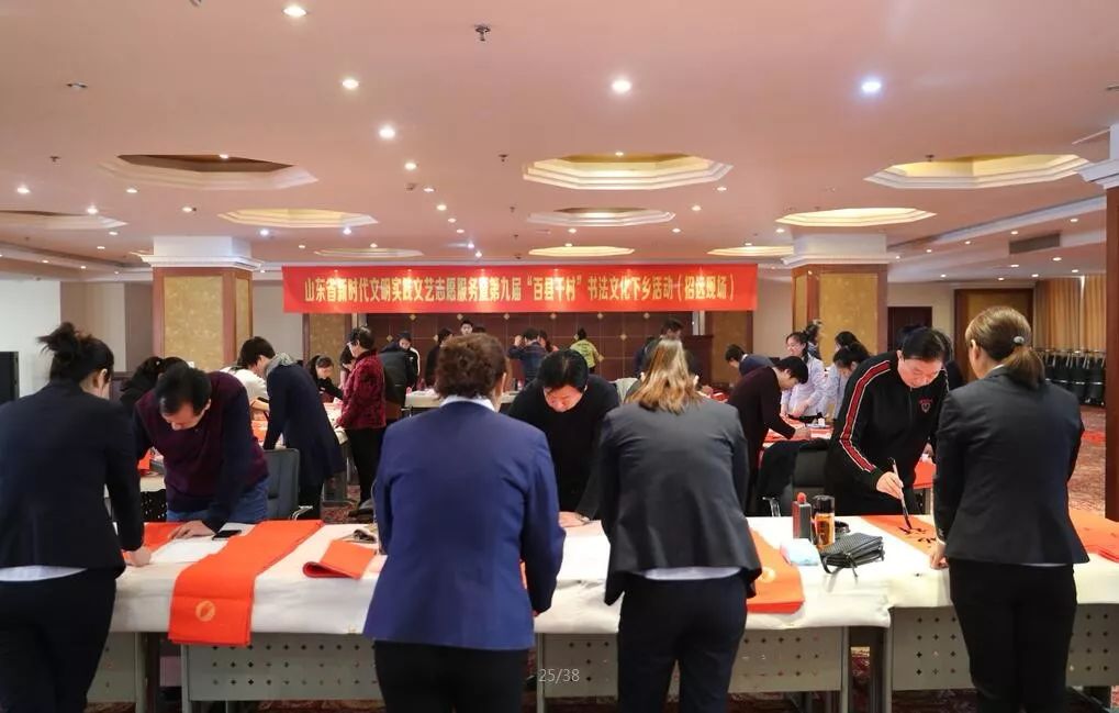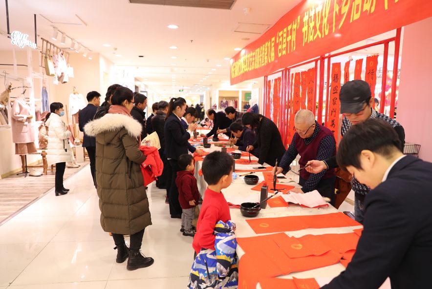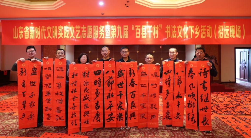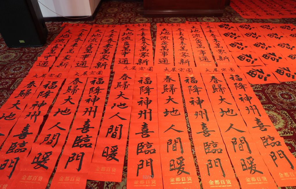 1月2日–1月6日,招遠(yuǎn)市書法家協(xié)會“我們的中國夢“文化進(jìn)萬家,山東省新時代文明實(shí)踐文藝志愿服務(wù)暨第九屆“百縣千村”書法下鄉(xiāng)活動之百人寫春聯(lián)活動在金都百貨八樓會議室順利舉行。此次活動共組織了100名志愿者,寫春聯(lián)5000多副。