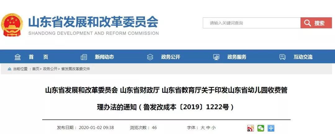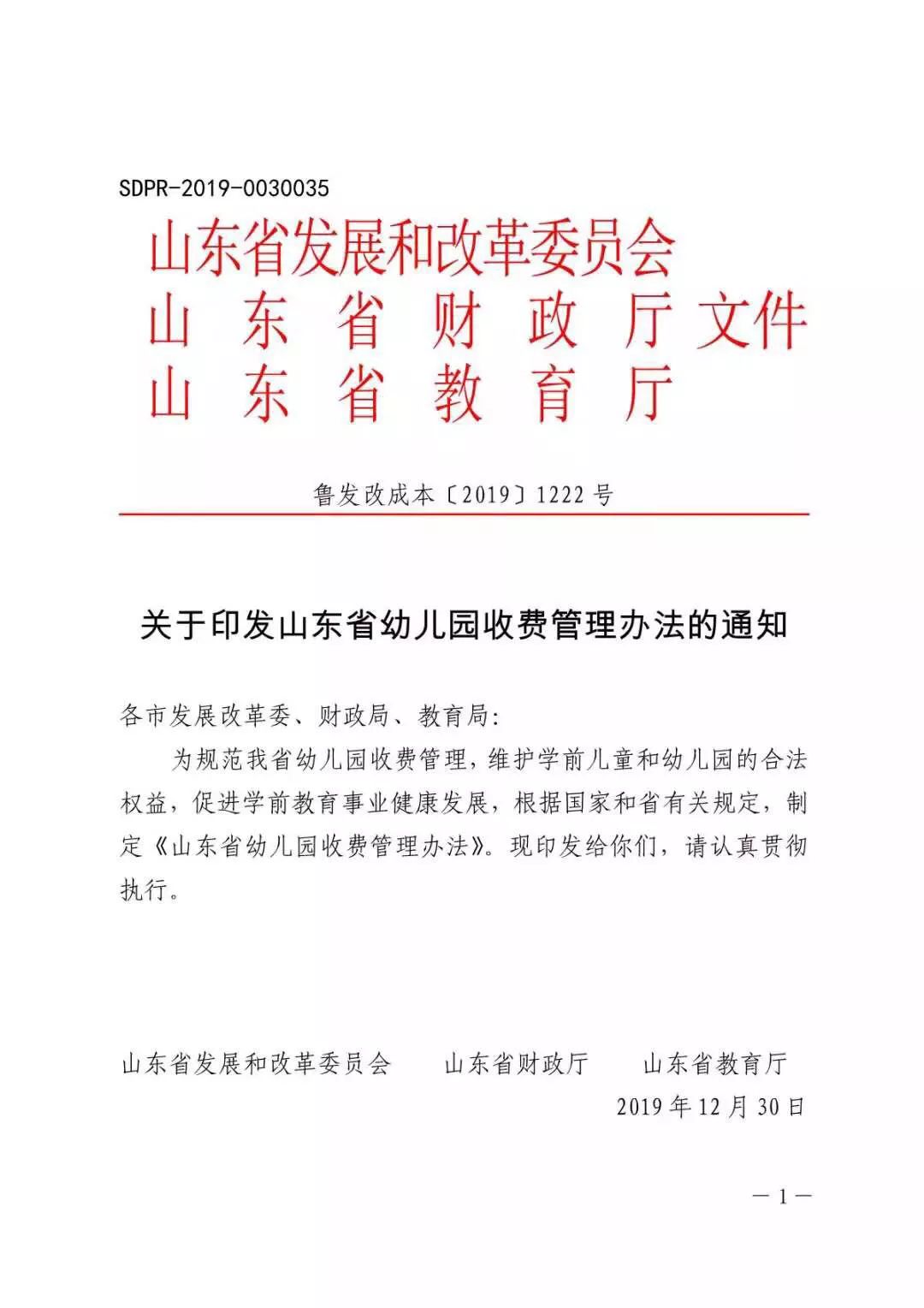 印發(fā)《山東省幼兒園收費(fèi)管理辦法》