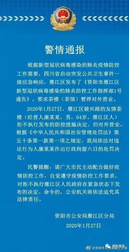 公安提醒:拒不執(zhí)行政府防控措施,多人被拘留!