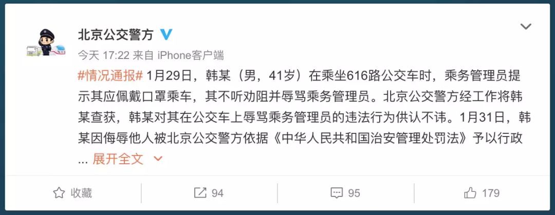 1月27日,廣州一男子上公交車不戴口罩,不聽勸阻被拘。1月30日,荊門市一家通信充值營業(yè)廳開門營業(yè),工作人員賀某沒有佩戴口罩。社區(qū)工作人員反復勸告拒不配合。報警后賀某被公安機關依法行政拘留5日。
