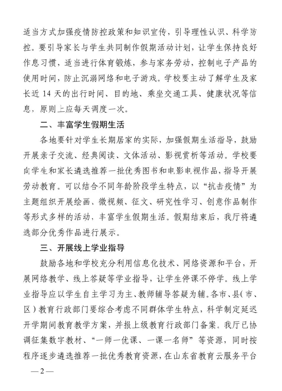 因延遲開學(xué)耽誤的教學(xué)內(nèi)容,主要通過調(diào)減周末時間、壓縮暑期假期等方式來補償,保證總教學(xué)時長不減少。春季學(xué)期開始后,原則上實行“零起點”教學(xué),不得搶趕進度。針對初中和高中畢業(yè)年級,各地或?qū)W校在原定假期時間結(jié)束后,在確保覆蓋所有學(xué)生的前提下,可通過線上教學(xué)等方式講授新課程。其他年級原則上不講授新課。
