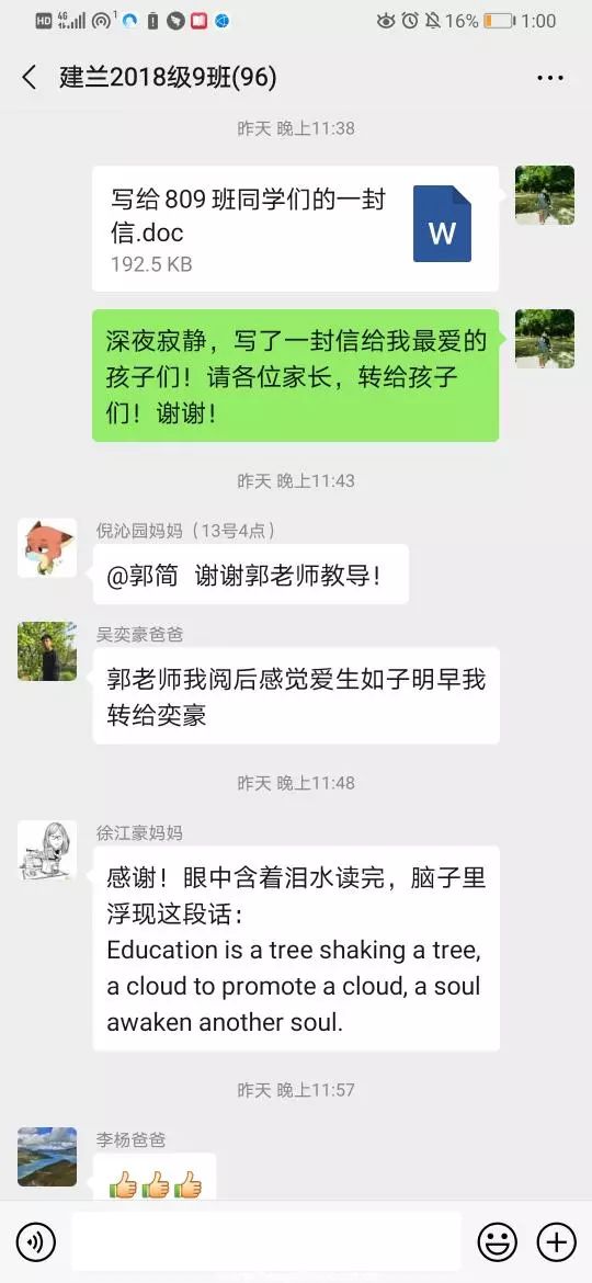 郭老師將這封信發(fā)出去后,不少家長(zhǎng)發(fā)出評(píng)論,他們說(shuō):
