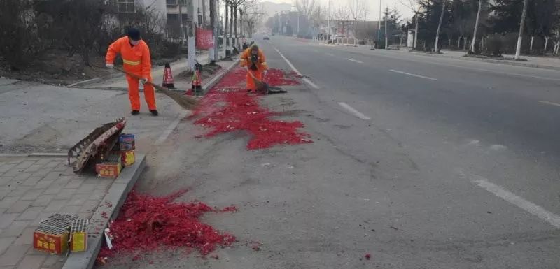 今天,384名環(huán)衛(wèi)工人共清理清掃溫泉路、泉山路、羅峰路、魁星路等街道鞭炮紙屑260多處,清掃車(chē)11輛,清掃大量鞭炮紙,確保了城區(qū)道路整潔干凈。