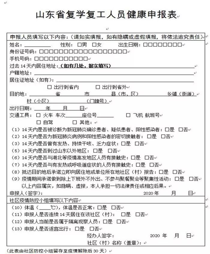 在山東省境內(nèi)居住、連續(xù)14天以上沒(méi)有發(fā)熱、持續(xù)干咳、乏力等癥狀,且排除以下情形的,可申請(qǐng)辦理健康通行卡: