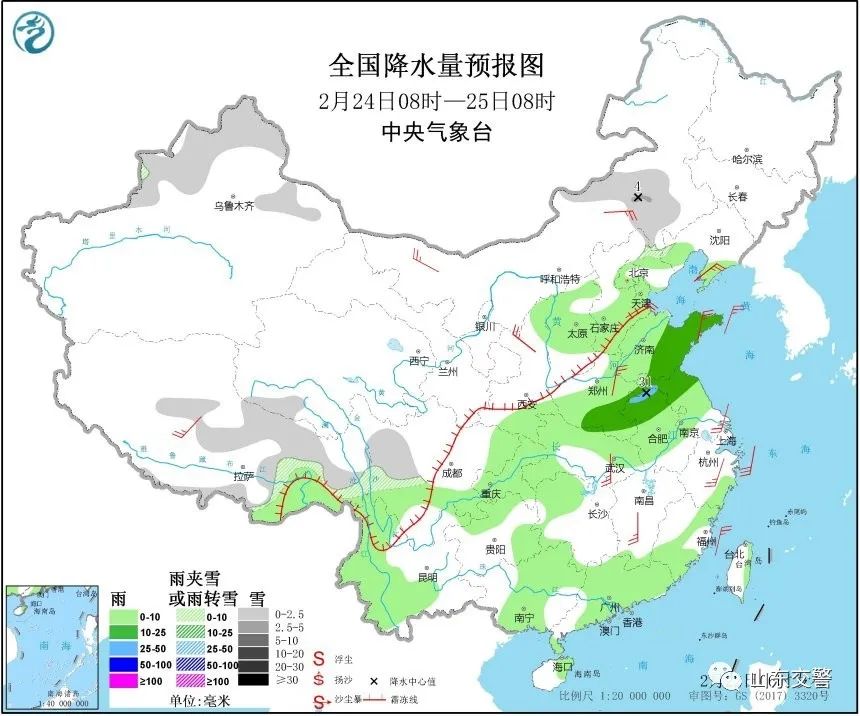 今天夜間到明天白天,全省天氣晴間多云。半島地區(qū)北風(fēng)3~4級轉(zhuǎn)南風(fēng)5~6級陣風(fēng)7級,魯西北和魯中地區(qū)南風(fēng)3級逐漸增強(qiáng)到4級陣風(fēng)5~6級,其他地區(qū)南風(fēng)3~4級。 最低氣溫:半島內(nèi)陸地區(qū)-4℃左右,魯西北的西部、魯西南和沿海地區(qū)3℃左右,其他地區(qū)-2℃左右。 23日夜間到24日白天,全省天氣多云轉(zhuǎn)陰,魯南、魯中和半島南部地區(qū)有小到中雨,其他地區(qū)有小雨。南風(fēng),半島地區(qū)4~5級陣風(fēng)6級逐漸減弱到3~4級,其他地區(qū)3~4級。 最低氣溫:魯中山區(qū)、魯東南和半島內(nèi)陸地區(qū)2℃左右,魯西北的西部、魯西南和沿海地區(qū)6℃左右,其他地區(qū)4℃左右。 24日夜間到25日白天,魯西北的東部、魯中、魯東南和半島地區(qū)天氣陰有小雨轉(zhuǎn)多云,其他地區(qū)天氣陰轉(zhuǎn)多云。半島地區(qū)南風(fēng)3~4級轉(zhuǎn)北風(fēng)5~6級陣風(fēng)7~8級,魯西北和魯中的北部地區(qū)北風(fēng)3~4級逐漸增強(qiáng)到4~5級陣風(fēng)6級,其他地區(qū)南風(fēng)轉(zhuǎn)北風(fēng)3~4級。 最低氣溫:魯西北的東部、魯中山區(qū)和半島內(nèi)陸地區(qū)2℃左右,其他地區(qū)5℃左右。