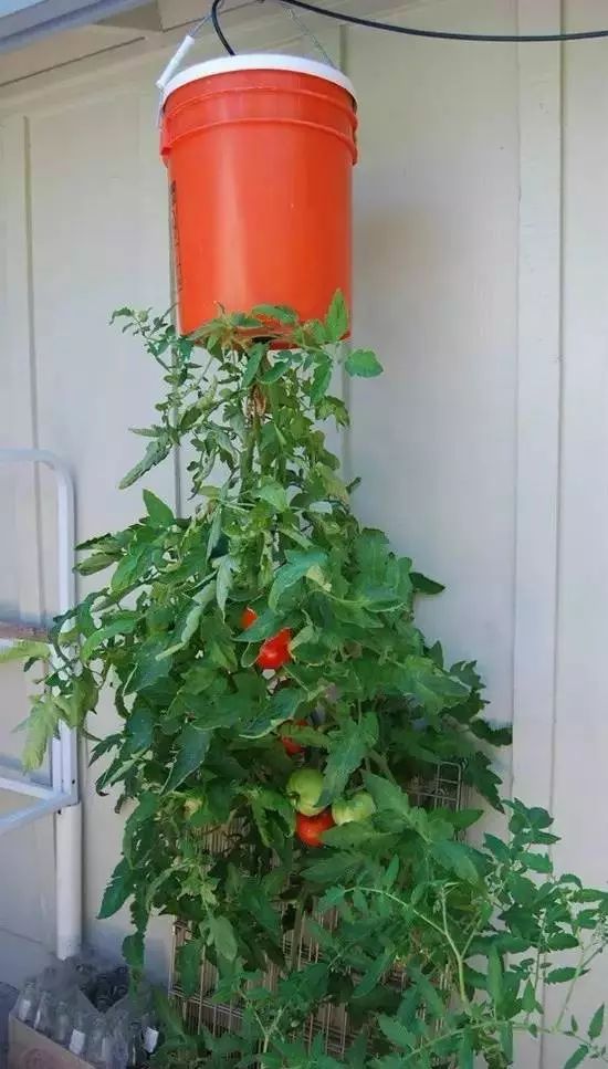 除了傳統(tǒng)的竹子綁枝扶植法,還可以用鐵絲做一個(gè)這樣的圓網(wǎng)讓番茄攀枝。