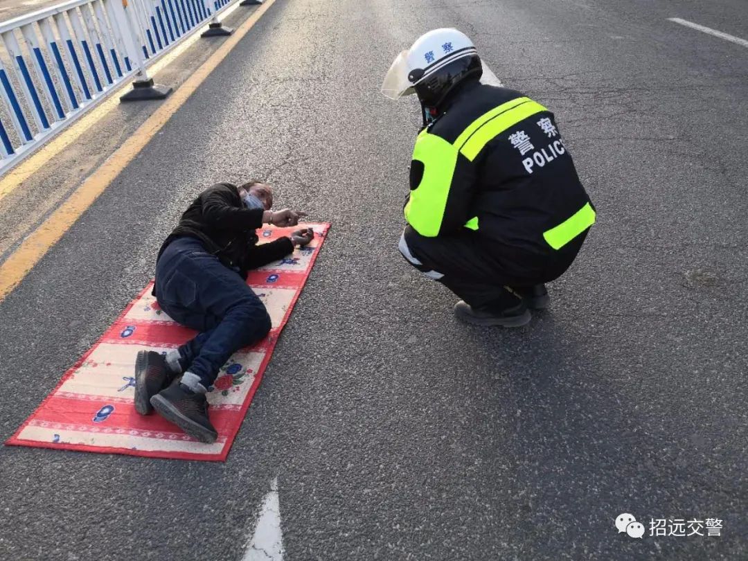3月14日17時(shí)10分左右,招遠(yuǎn)交警大隊(duì)一中隊(duì)的執(zhí)勤民警,在溫泉河?xùn)|路路口附近巡邏時(shí),發(fā)現(xiàn)一名男子躺在馬路中間,民警立即上前查看,發(fā)現(xiàn)該男子滿身酒氣,疑似醉酒。這時(shí)候正是下班高峰期,過(guò)往車輛陸續(xù)從該男子的身邊駛過(guò),非常危險(xiǎn),要是有人疏忽大意勢(shì)必釀成悲劇。