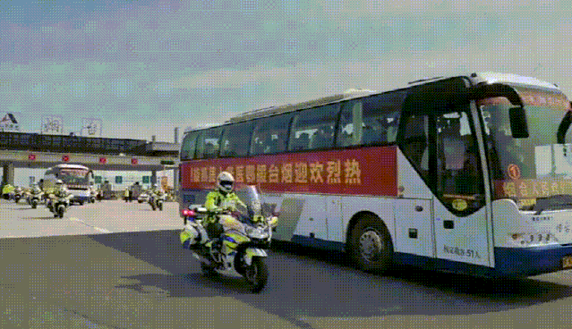 在經(jīng)過簡(jiǎn)單的歡迎儀式后,童曉輝坐上專車,由煙臺(tái)鐵騎護(hù)送至高速口。