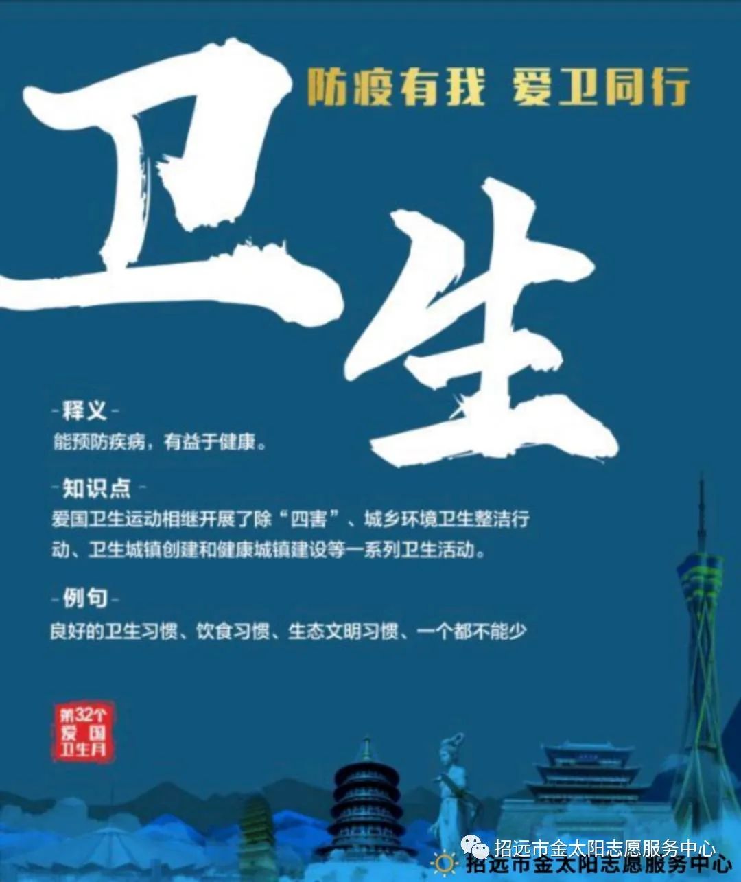 4 月份是全國(guó)第 32 個(gè)愛(ài)國(guó)衛(wèi)生月,值此4 月 7 日第 71 個(gè)世界衛(wèi)生日 來(lái)臨之際,為進(jìn)一步鞏固疫情防控成果,推動(dòng)“愛(ài)國(guó)衛(wèi)生運(yùn)動(dòng)”深入開展。金太陽(yáng)志愿服務(wù)中心號(hào)召全民積極參與愛(ài)國(guó)衛(wèi)生運(yùn)動(dòng),為鞏固疫情防控成果繼續(xù)貢獻(xiàn)自己的力量。上線了"愛(ài)國(guó)衛(wèi)生人人受益,疫情防控人人有責(zé)"活動(dòng)主題的春季愛(ài)國(guó)衛(wèi)生清潔整治專項(xiàng)活動(dòng)。