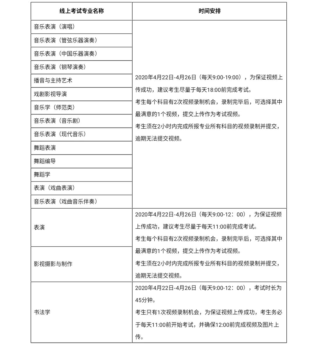 組織??嫉膶I(yè)均在線上完成考試,詳見下表: