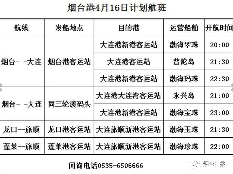 煙大航線16日白天停航