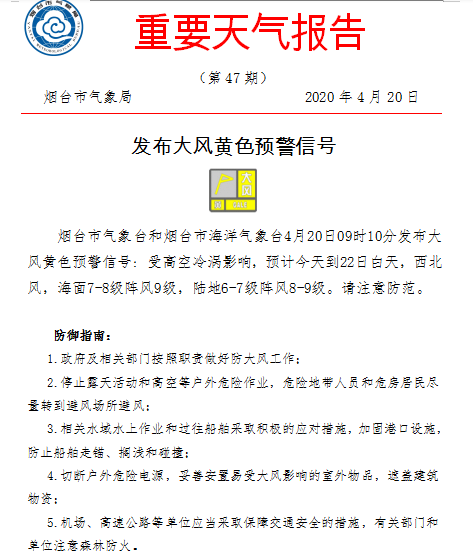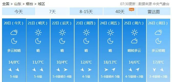 招遠(yuǎn)市氣象局今天早晨06時發(fā)布的天氣預(yù)報(bào):