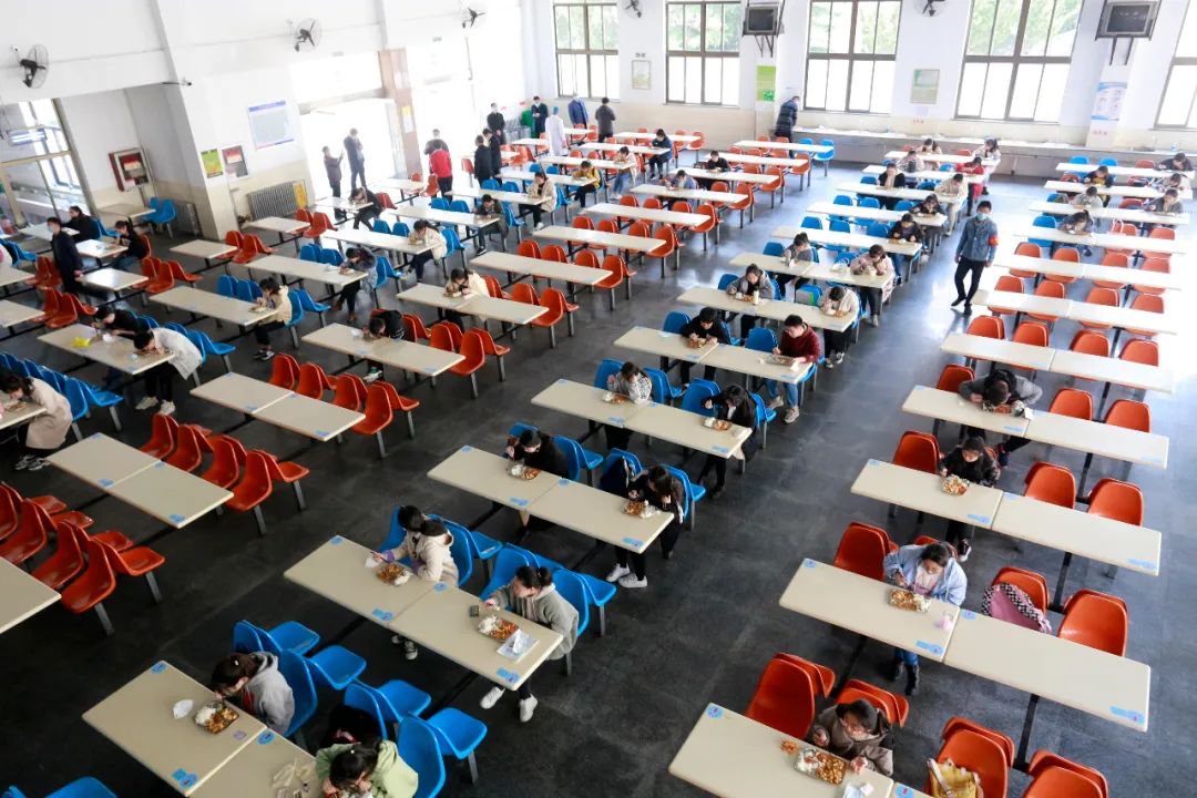 為取保就餐安全,各學(xué)校詳細(xì)制定就餐方案,細(xì)化排隊(duì)測溫、腳底消毒、有序洗手、排隊(duì)取餐、按號就坐、文明用餐、排隊(duì)收殘、保潔消毒等各個環(huán)節(jié),通過錯峰就餐、分散領(lǐng)餐就餐、單向間隔就餐等方式減少師生密集接觸。