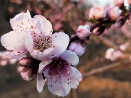 家在梨花落,旁有桃花海。