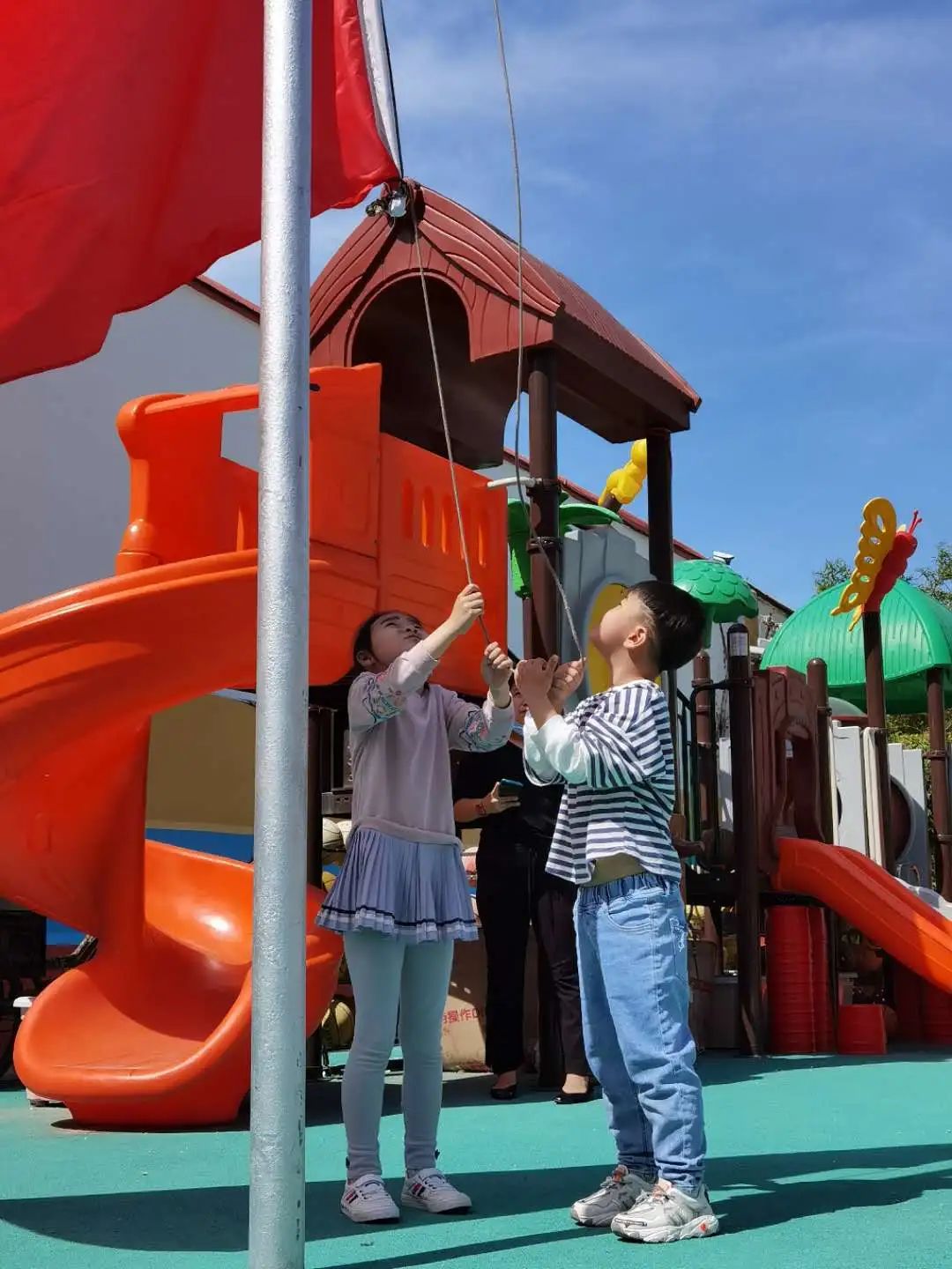 開學(xué)第一天,沒有弟弟妹妹的升旗儀式,依舊儀式感滿滿,小小升旗手們,在全體師幼的注目下,將鮮艷的五星紅旗緩緩升起。