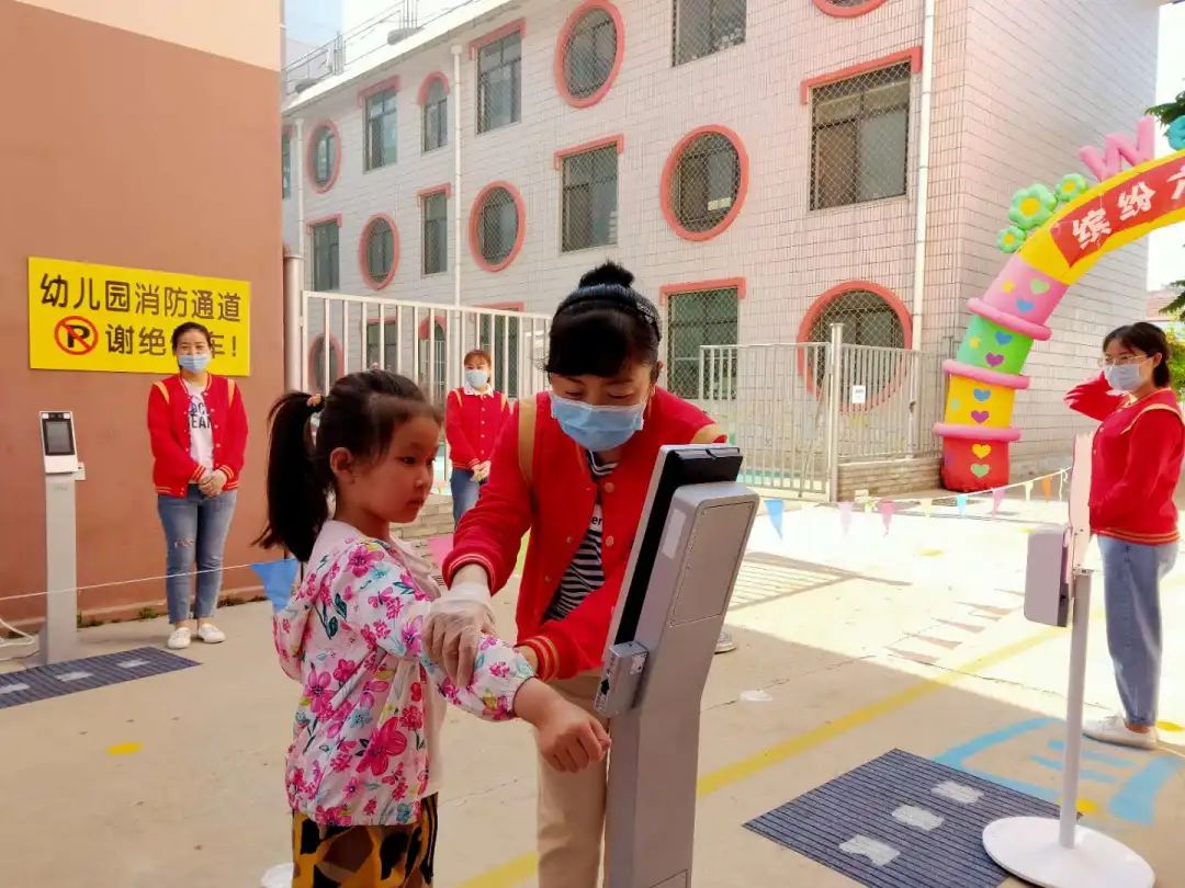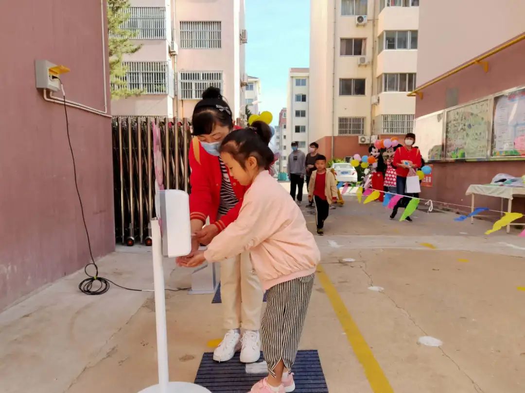 清晨,伴著六一歡快的旋律,可愛的孩子們?cè)诩议L的陪伴下有序地間隔1米排隊(duì)。在老師們的指引下,有條不紊地通過智能電子測(cè)溫儀測(cè)溫、智能免洗消毒機(jī)消毒、查看口腔,為安全返園筑起了第一道防線。晨檢合格的小朋友們開心的和爸爸媽媽揮手告別,迫不及待地參與到戶外晨練活動(dòng)中。