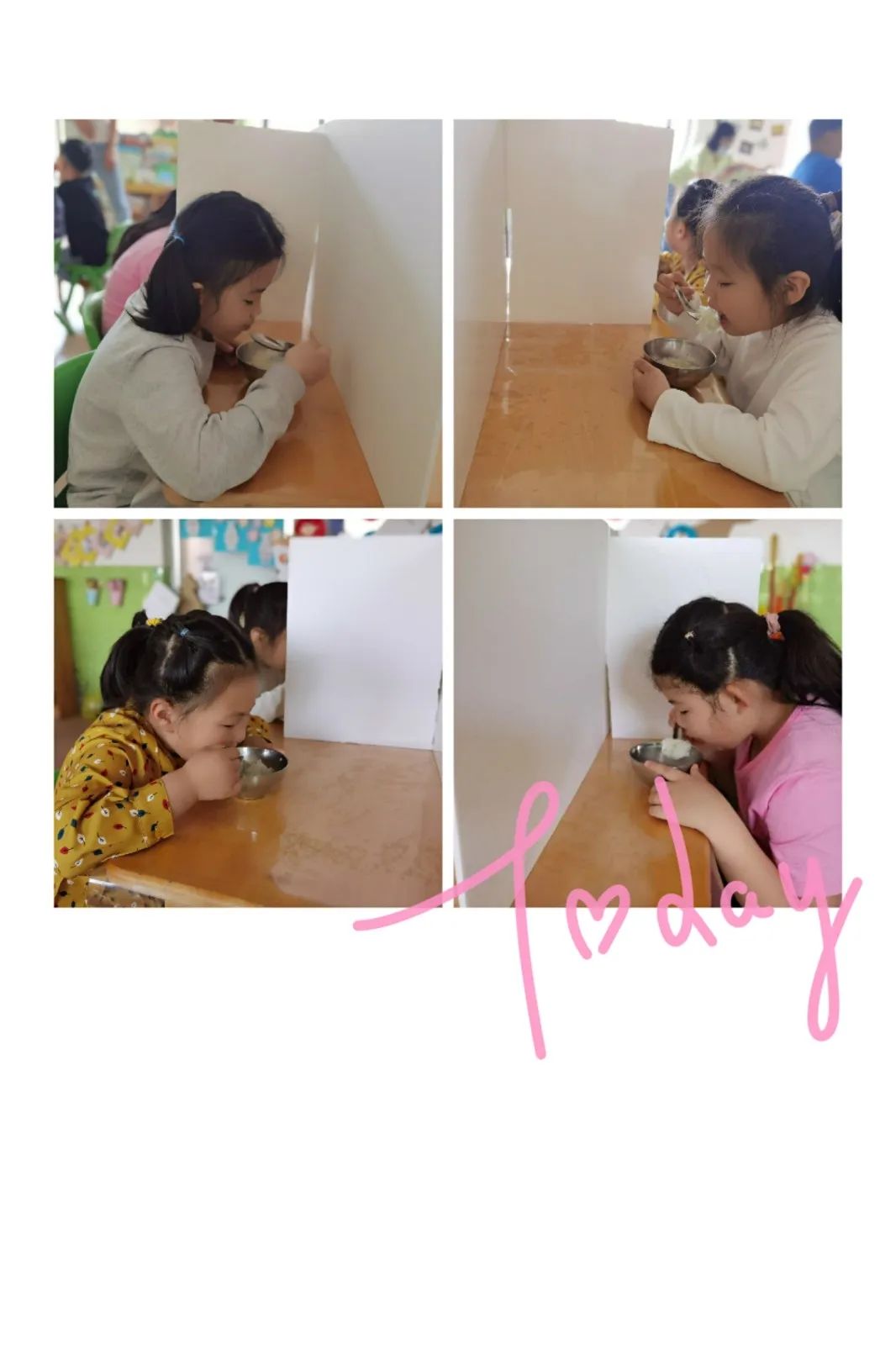 回到久違的活動(dòng)室,在老師的引導(dǎo)下,小朋友們按照地面標(biāo)識(shí)與小伙伴間隔一米錯(cuò)峰排隊(duì),如廁,洗手,喝粥,一切都有條不紊、井然有序。