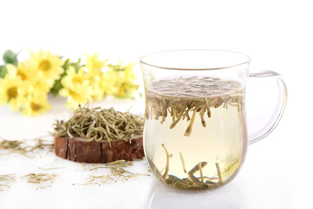 新鮮的金銀花帶清香,含水量花蜜較多,鮮花經(jīng)曬干或按制綠茶的方法制干,即為金銀花茶。