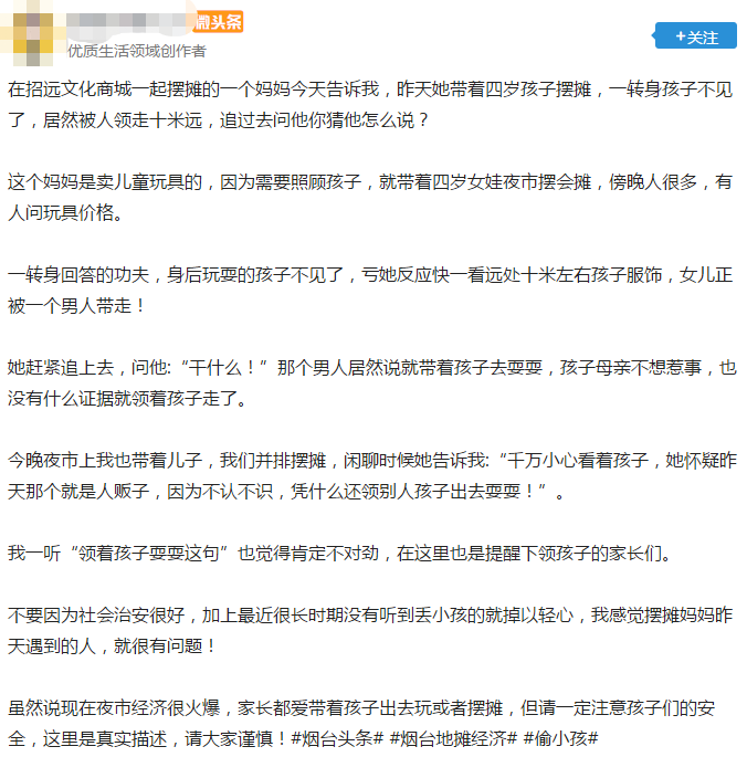 招遠(yuǎn)夜市一4歲女孩被陌生人帶走,幸虧家長(zhǎng)及時(shí)發(fā)現(xiàn)...