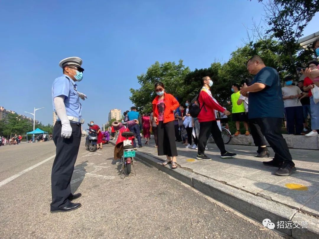 今天是高考第一天,招遠(yuǎn)交警大隊按照高考交通安保方案的要求,全體參戰(zhàn)民警,早上7點到崗,對一中、二中考點周邊的道路進(jìn)行交通管制,指揮疏導(dǎo)交通,保障接送考生的車輛順利抵達(dá)考場。