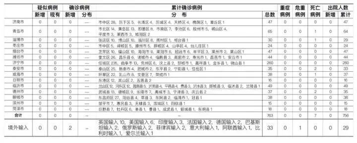 山東省本地病例按確診時(shí)醫(yī)院所在縣區(qū)統(tǒng)計(jì),境外輸入病例單獨(dú)統(tǒng)計(jì)。