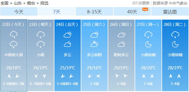 招遠(yuǎn)近一周天氣變化如下