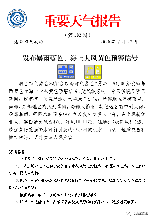 煙臺(tái)市發(fā)布暴雨藍(lán)色預(yù)警