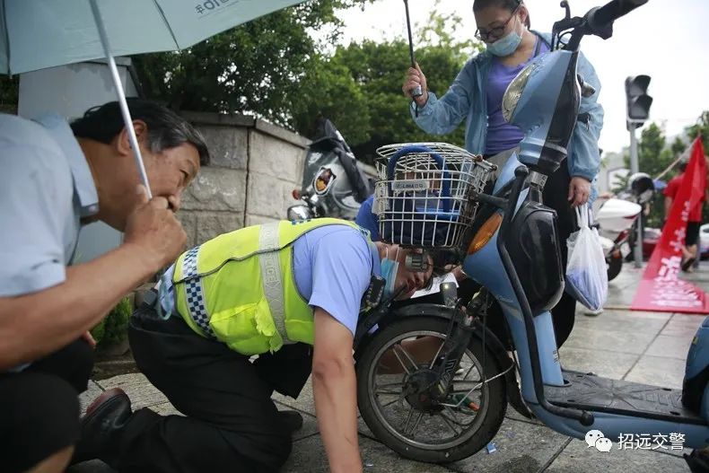 近期,招遠(yuǎn)交警在商業(yè)繁華路段和人員密集區(qū)設(shè)立多個(gè)電動(dòng)車流動(dòng)掛牌點(diǎn),早晨7:30—9:30是上班高峰期,民警、輔警為路過(guò)的市民進(jìn)行流動(dòng)掛牌工作,每個(gè)電動(dòng)車只需3—5分鐘。7月23日上午,交警大隊(duì)輔警郭明政在為群眾辦理電動(dòng)車掛牌業(yè)務(wù)時(shí),冒雨單膝跪地查找車架號(hào),周邊群眾深受感動(dòng),紛紛為其撐起了傘。