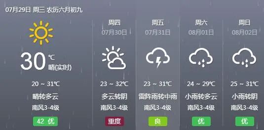 31日白天到夜間,全省天氣陰,魯南和半島地區(qū)有中雨局部大雨或暴雨并伴有雷電,其他地區(qū)有雷雨或陣雨。南風3~4級,雷雨地區(qū)雷雨時陣風7~9級。