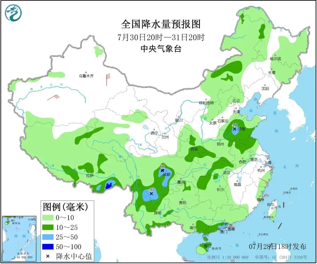30日白天到夜間,全省天氣多云轉陰,魯西北、魯中的西部和魯南地區(qū)有雷雨或陣雨。南風3~4級,雷雨地區(qū)雷雨時陣風7~9級。