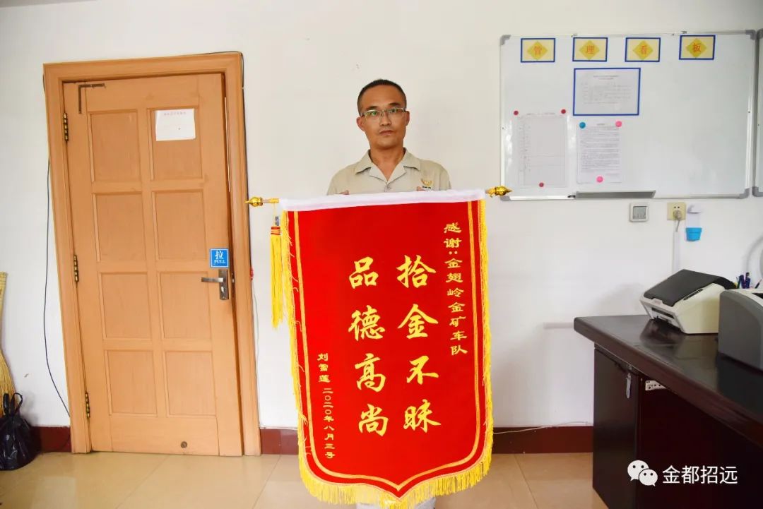8月4日下午,市民馬先生滿懷感激地來到招金礦業(yè)股份有限公司金翅嶺金礦,為該礦員工劉新強(qiáng)送上了一面“拾金不昧、品德高尚”的感謝錦旗。面對馬先生的到來,員工劉新強(qiáng)笑著說:“您太客氣了,這是我應(yīng)該做的……”