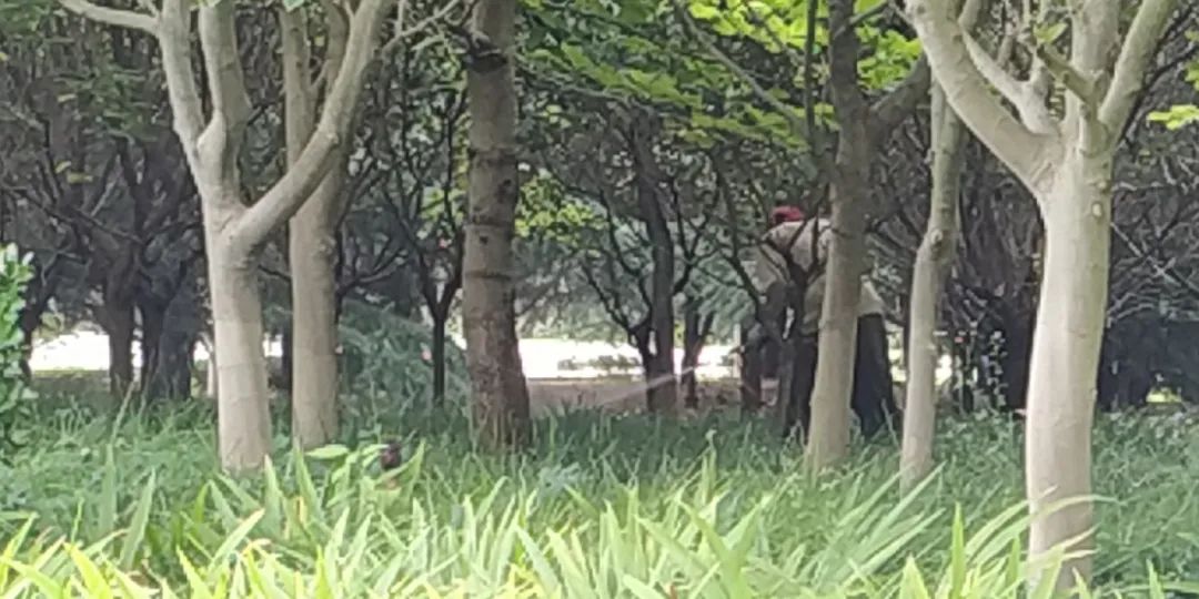 連日來,在黃金閣公園,園林工人在戶外作業(yè)時(shí)頻頻“中招”,拔草時(shí)防護(hù)手套及衣物上會粘附多頭棕褐色的成蟲,稍不留神,皮膚裸露處便遭其叮咬,而且不易察覺。天氣炎熱,大家雖然做了簡單的個(gè)人防護(hù),但每天工作時(shí)仍舊會遭到蜱蟲的侵?jǐn)_,不僅嚴(yán)重影響了大家的自身安全,也極大地延緩了日常養(yǎng)護(hù)工作進(jìn)度。為了徹底解決這一狀況,八月上旬,園林中心積極組織綠化植保部門及時(shí)進(jìn)行全面防治,藥劑選用專門的殺螨劑—高效氯氟氰菊酯,因其活性高、藥效迅速且耐雨水沖刷,能夠起到很好的防治效果。為了保證施藥均勻到位,車輛無法靠近的各大公園綠地采用人工高壓霧狀噴藥殺滅蜱蟲,其他道路綠地將會陸續(xù)利用機(jī)械全面消殺,減少蜱蟲侵?jǐn)_,保證綠地養(yǎng)護(hù)工作的順利進(jìn)行。現(xiàn)階段已完成黃金閣公園的前期消殺,效果明顯。