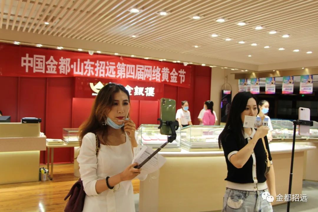 上午9點(diǎn),一場以“淘金”為主線的網(wǎng)絡(luò)黃金盛宴在黃金珠寶首飾城正式開啟,來自淘寶、抖音、快手等平臺(tái)的5位人氣網(wǎng)紅閃亮登場,市商務(wù)局負(fù)責(zé)人走進(jìn)直播間化身“主播”,與粉絲一起互動(dòng),為網(wǎng)友推薦“招遠(yuǎn)黃金”品牌?;顒?dòng)一上線,淘寶直播觀看人數(shù)迅速過萬。