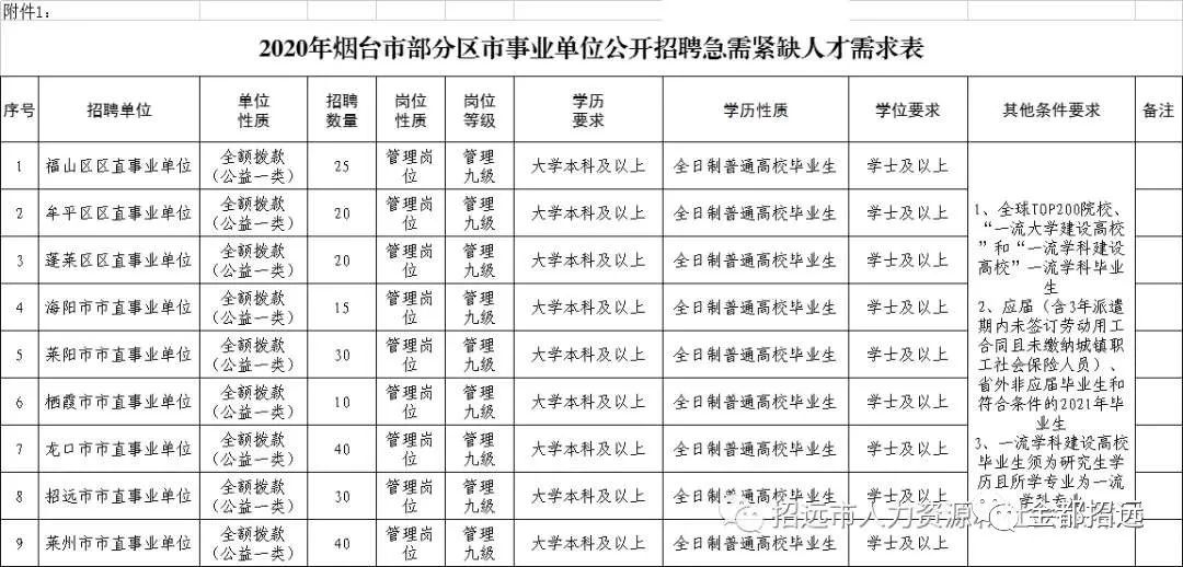 按照《事業(yè)單位人事管理?xiàng)l例》(國(guó)務(wù)院令第652號(hào))等規(guī)定,2020年福山區(qū)、牟平區(qū)、蓬萊區(qū)、海陽(yáng)市、萊陽(yáng)市、棲霞市、龍口市、招遠(yuǎn)市、萊州市事業(yè)單位面向全球TOP200高校畢業(yè)生、“一流大學(xué)建設(shè)高校”和“一流學(xué)科建設(shè)高?!币涣鲗W(xué)科(簡(jiǎn)稱“雙一流”)畢業(yè)生公開(kāi)招聘急需緊缺人才230名?,F(xiàn)公告如下: