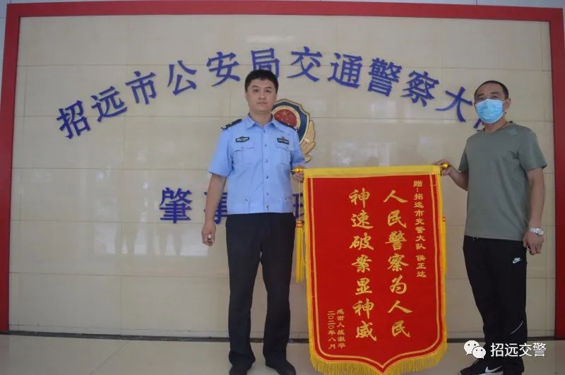 8月31日上午,招遠市民侯先生來到市交警大隊肇事處理中隊,將一面寫有“人民警察為人民,神速破案顯神威”錦旗送到辦案民警手中,對民警快速破獲案件表示感謝。
