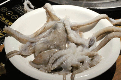 八帶的頭和爪熟的時間不同,如果一起下鍋很可能頭才剛熟,爪已經(jīng)老得咬不動,因此頭和爪最好分開煮。先把頭切下來下鍋煮,七八分鐘以后,再把爪放到鍋里煮五六分鐘,這樣口感就會很脆。