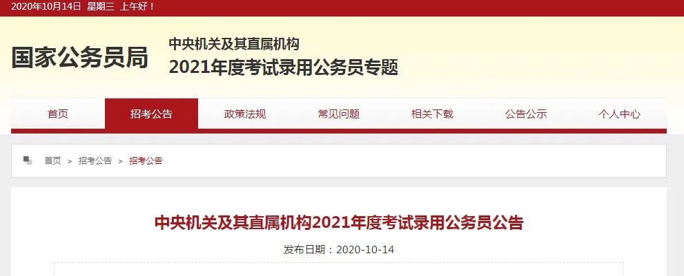各招錄機(jī)關(guān)的招考人數(shù)、具體職位、考試類別、資格條件等詳見《中央機(jī)關(guān)及其直屬機(jī)構(gòu)2021年度考試錄用公務(wù)員招考簡章》(以下簡稱《招考簡章》),報考者在2020年10月14日后可以通過中央機(jī)關(guān)及其直屬機(jī)構(gòu)2021年度考試錄用公務(wù)員專題網(wǎng)站(以下簡稱考錄專題網(wǎng)站,http://bm.scs.gov.cn/kl2021)查閱。
