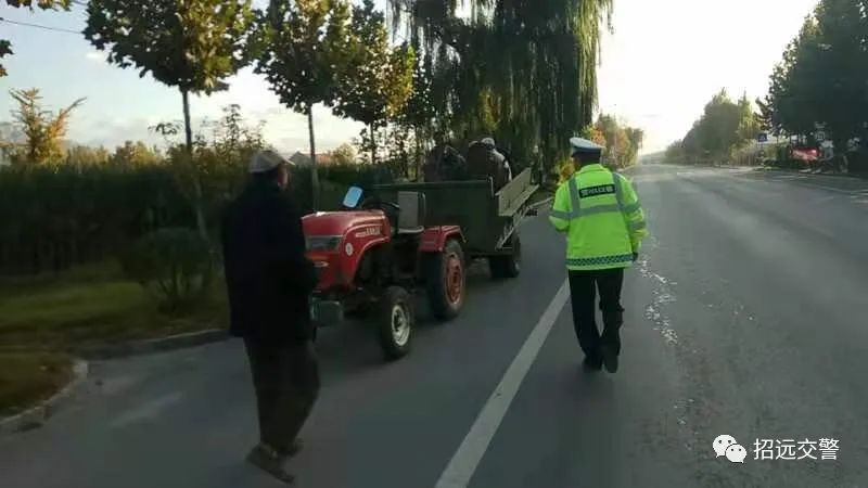 10月10日上午,招遠(yuǎn)交警大隊(duì)四中隊(duì)民警巡邏至213省道玲瓏鎮(zhèn)大蔣家村處時(shí),發(fā)現(xiàn)一輛魯0**9941號(hào)拖拉機(jī)后斗載了不少人,民警立即對(duì)其進(jìn)行檢查。
