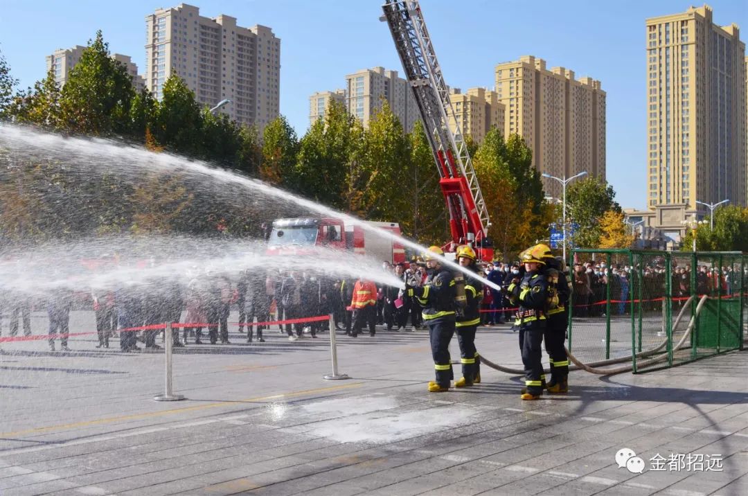消防隊(duì)員進(jìn)行了泡沫夾芯板燃燒試驗(yàn)、車輛破拆救援展示、百米內(nèi)攻救人操展示、登高車和器材裝備展示等。