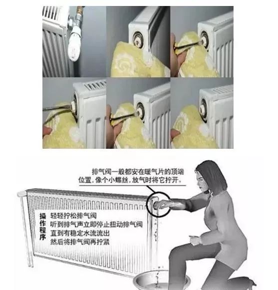 2、暖氣片排氣方法:每個暖氣片的末端都有一個類似螺絲的排氣閥(如下圖所示),只需要將排氣閥擰開(勿將排氣閥直接擰下來),用毛巾輕微捂住排氣閥以防暖氣片內(nèi)的水濺出弄臟墻壁,把氣排出來,直到有穩(wěn)定的水流出就可以了。再次特別提醒用熱戶,擰排氣閥時要小心輕擰,不可用力過猛,一旦擰斷了排氣閥會造成暖氣片漏水,嚴(yán)重時可導(dǎo)致人身傷害和財產(chǎn)損失。