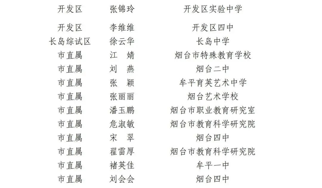 為夯實(shí)教育領(lǐng)軍人才隊(duì)伍基礎(chǔ),提升市級教壇新秀培養(yǎng)人選的教育教學(xué)水平,2020 年 9 月,市教育局在全市開展首批煙臺市教壇新秀培養(yǎng)人選“教學(xué)大比武”活動。經(jīng)學(xué)校、區(qū)市、地市三級評比,確定首批煙臺市教壇新秀培養(yǎng)人選“教學(xué)大比武”活動一等獎 53 人、二等獎 71 人、三等獎 53 人,現(xiàn)將獲獎名單予以公布。