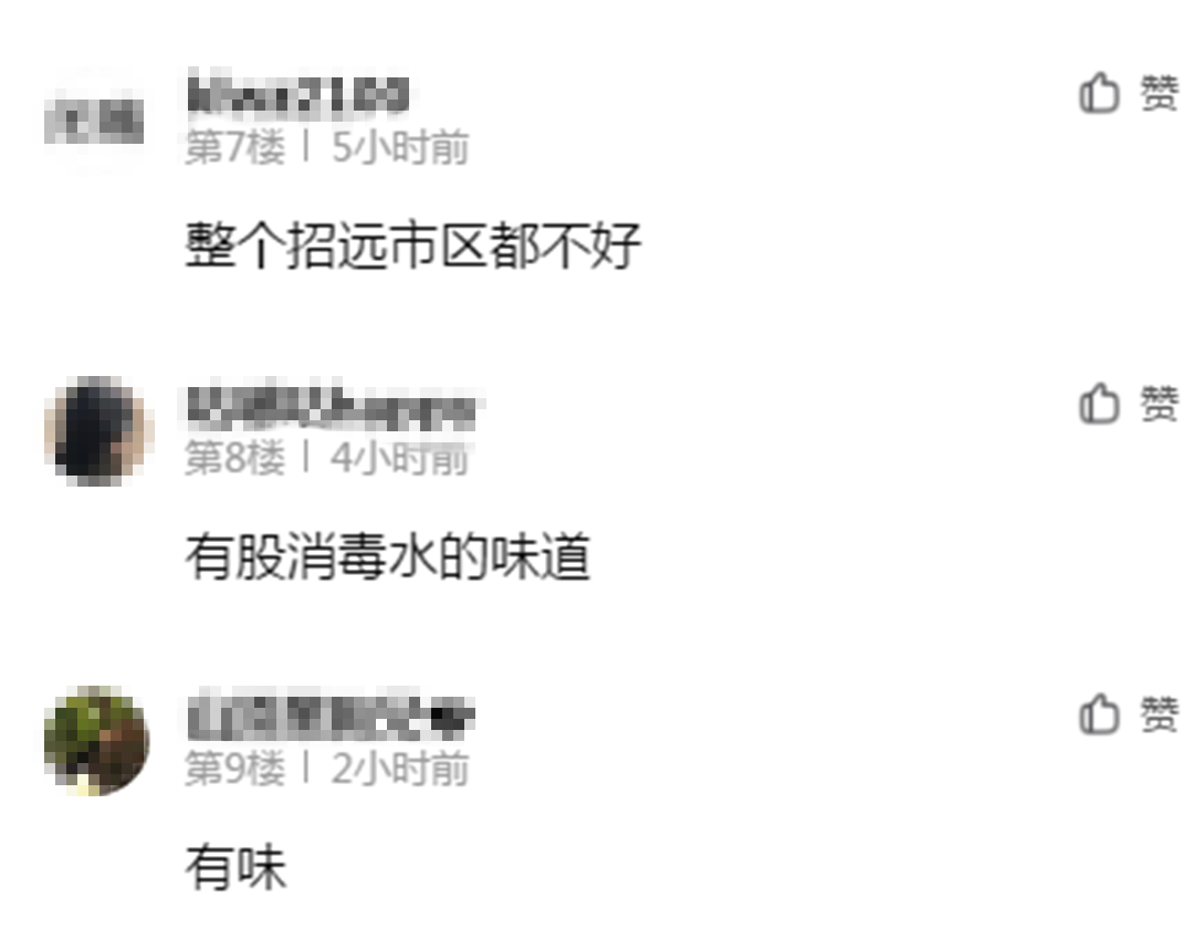 隨后記者聯(lián)系到了招遠市自來水公司的工作人員,工作人員解釋道:由于昨日更換供水水源,需要用消毒劑將管路進行消毒清洗,市民遇到的刺鼻味道是消毒劑的味道。此消毒劑除有味道外,對人體沒有危害,不影響市民正常使用。同時,由于冬季天氣寒冷,消毒劑吸附能力強,所以需要市民多放水進行排出。