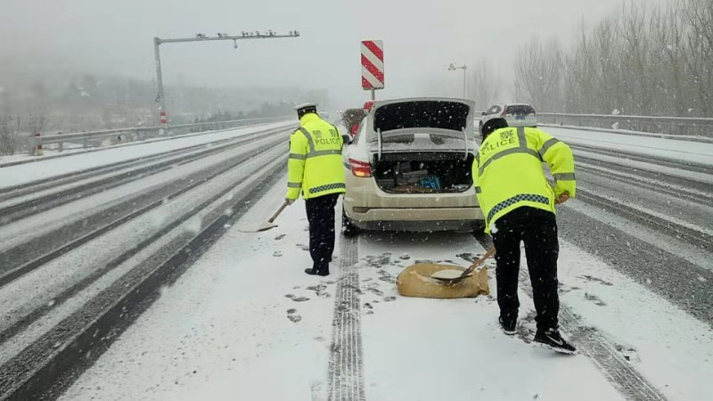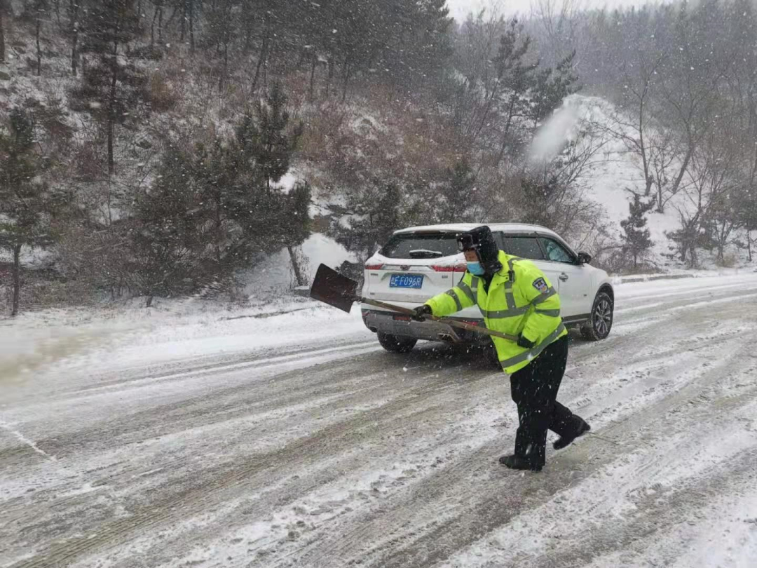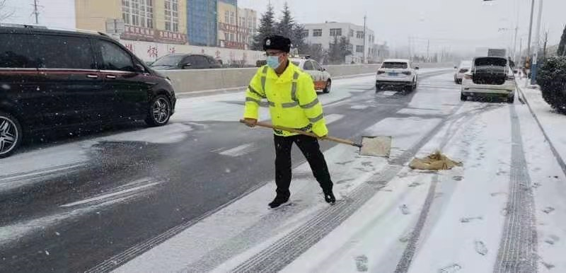 在206國道(文三線)金嶺段、大秦家段,228線(煙濰路)辛莊段,省道213線(黃水路)玲瓏段、畢郭段等主干道,部分路段坡長路滑,車輛行駛困難,民警拋灑融雪鹽、防滑沙,確保道路安全暢通;同時,進(jìn)行高密度巡邏,提醒過往車輛減速慢行,對路段內(nèi)發(fā)生的刮擦、追尾事故及時進(jìn)行處理,避免造成二次事故和交通擁堵。