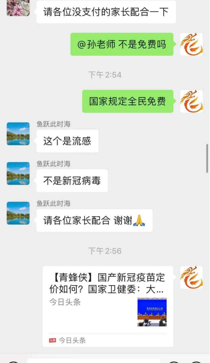 詐騙分子冒充老師,悄悄潛入學(xué)校的班級(jí)群里,以收取新冠疫苗費(fèi)用為由,對(duì)群內(nèi)家長(zhǎng)進(jìn)行詐騙。