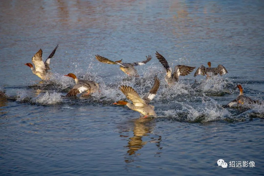 今年野生飛羽的種類除了常見的綠頭鴨、綠翅鴨、斑嘴鴨等留鳥外,尤其驚喜的是普通秋沙鴨增加了許多,這是往年比較少見的。反映了招遠(yuǎn)隨美麗鄉(xiāng)村,生態(tài)惠民等舉措的實(shí)施和深化,在水資源的保護(hù)、森林植被的培育、人們愛護(hù)野生飛羽意識(shí)等方面的提高,使全市的生態(tài)環(huán)境更加友好和諧。