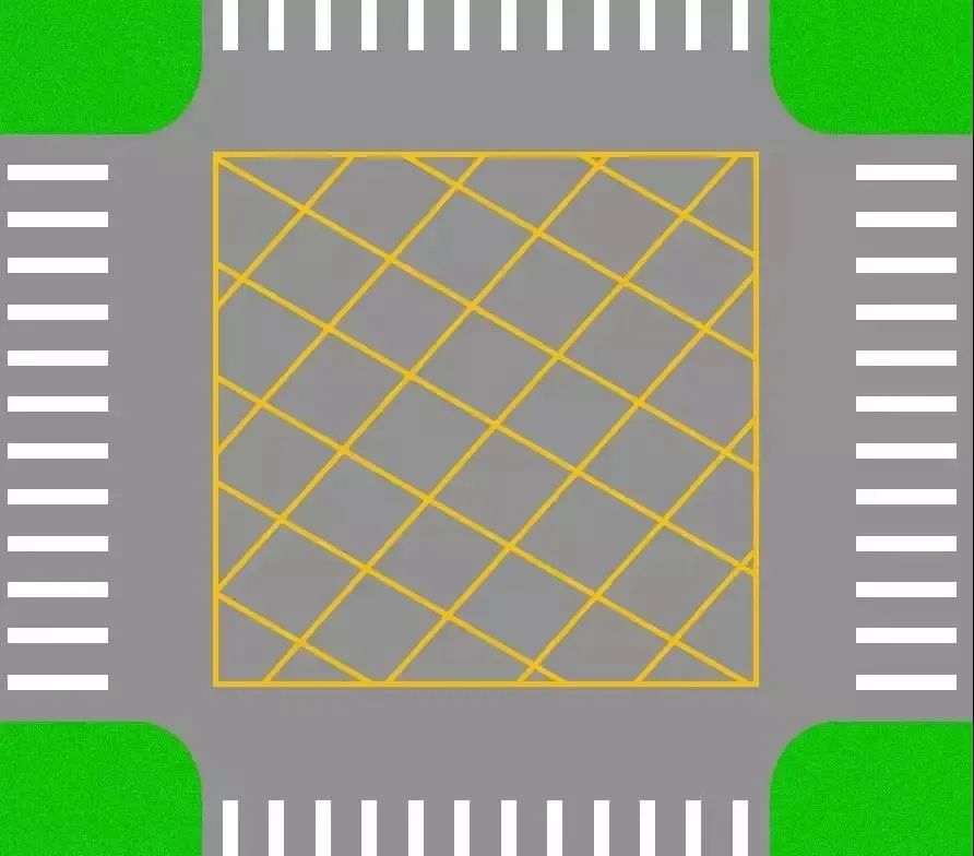 黃色網(wǎng)格是禁停區(qū)域,但只要中央沒有隔離護欄的,網(wǎng)格中央是虛線的,可以掉頭。