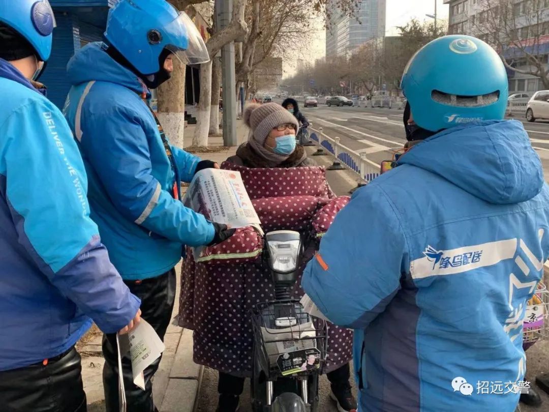 為進(jìn)一步激發(fā)廣大群眾參與道路交通安全治理的積極性,全面壓降道路交通事故,1月14日,招遠(yuǎn)交警組織10名“餓了么”外賣(mài)騎手,與交警一起上路執(zhí)勤,共同開(kāi)展文明交通志愿服務(wù)活動(dòng)。