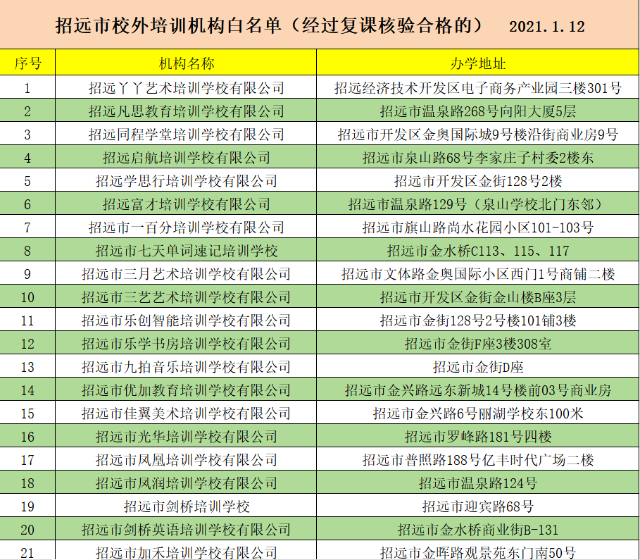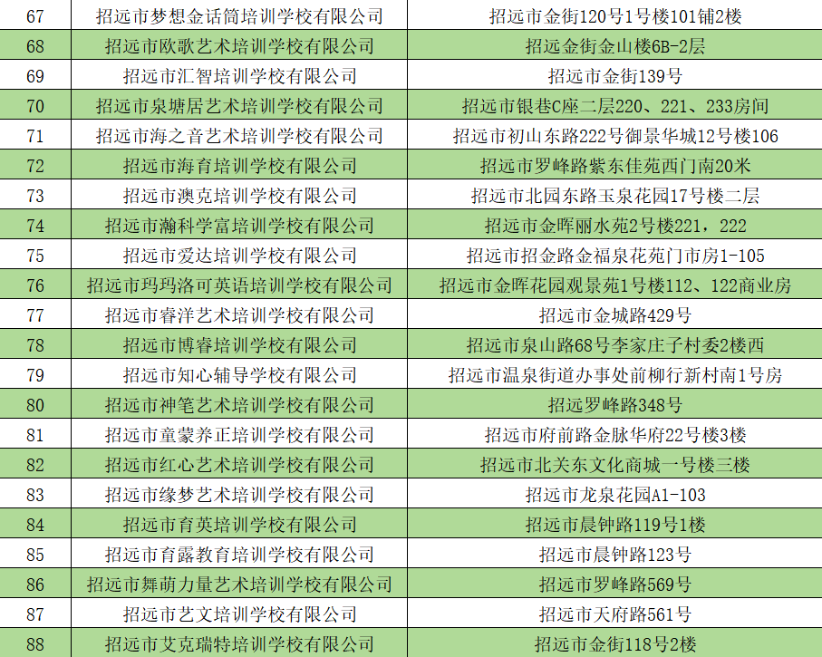 二.選擇合法培訓機構(gòu),認真查看辦學資質(zhì)。家長應(yīng)選擇證照齊全并且經(jīng)過核驗合格的培訓機構(gòu)參加學習。目前我市共有證照齊全的校外培訓機構(gòu)131所,經(jīng)過核驗合格可以開課的培訓機構(gòu)120所(名單附后)。希望各位家長不要送孩子到無證的培訓機構(gòu)參加培訓,許多無證的非法培訓機構(gòu)往往存在有安全隱患、培訓質(zhì)量無法保障、退費難等問題。