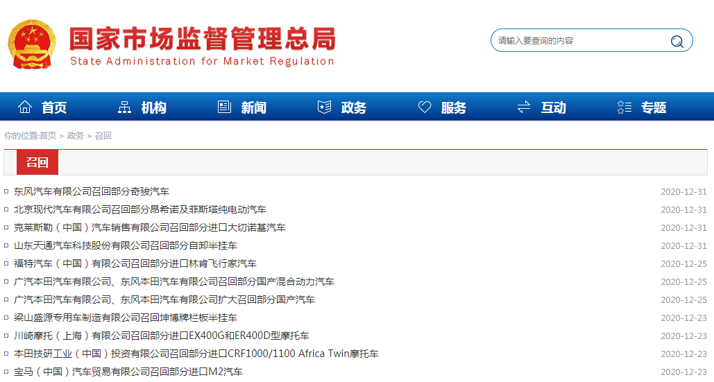 決定自2020年12月31日起,召回部分國產(chǎn)混合動力汽車,具體信息如下: