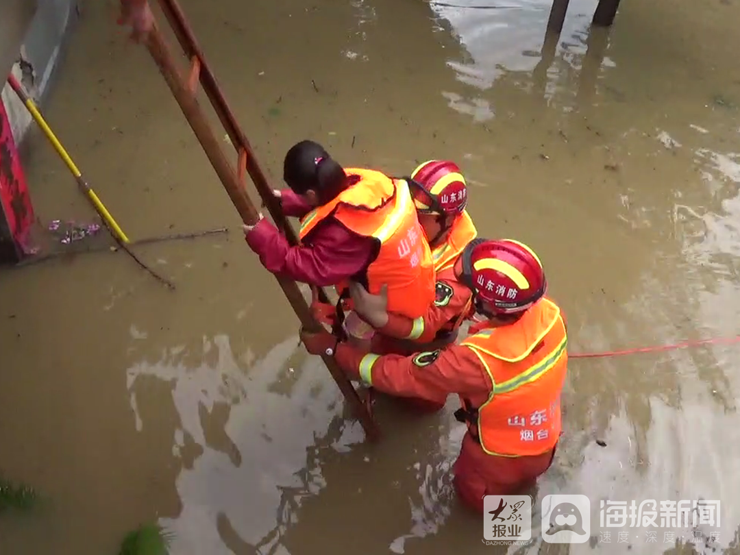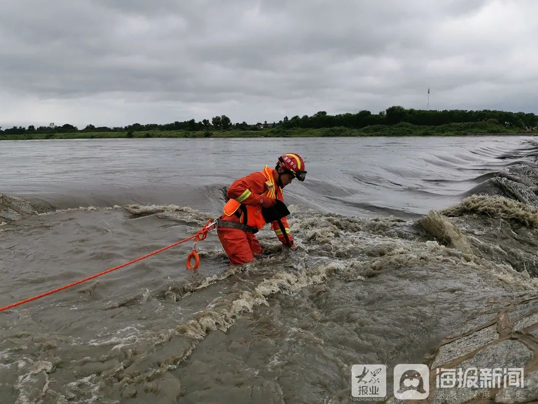 8月26日,受臺(tái)風(fēng)“巴威”影響,招遠(yuǎn)普降暴雨,一家三口被困房頂,消防指戰(zhàn)員們半個(gè)身子浸在冷水里,將一家三口救出。同日,兩人因暴雨被困橋下,招遠(yuǎn)消防員身系安全繩,面對(duì)湍急的水流和看不見的路,試探著、摸索著……